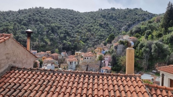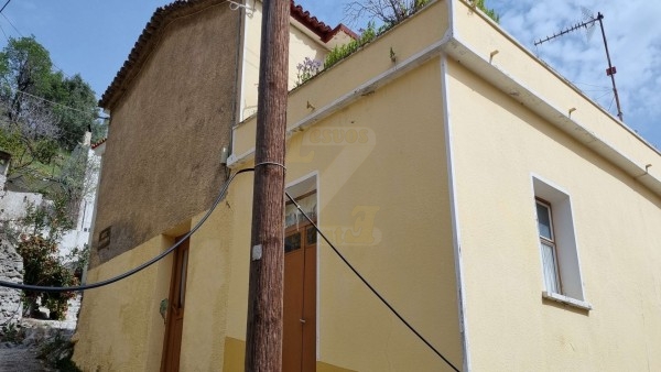 Στο χωριό Πλαγιά στο Πλωμάρι Λέσβου, βρίσκεται αυτή η διώροφη μονοκατοικία, ηλικίας 60 ετών. Από την ταράτσα της φαίνεται το χωριό και το βουνό.