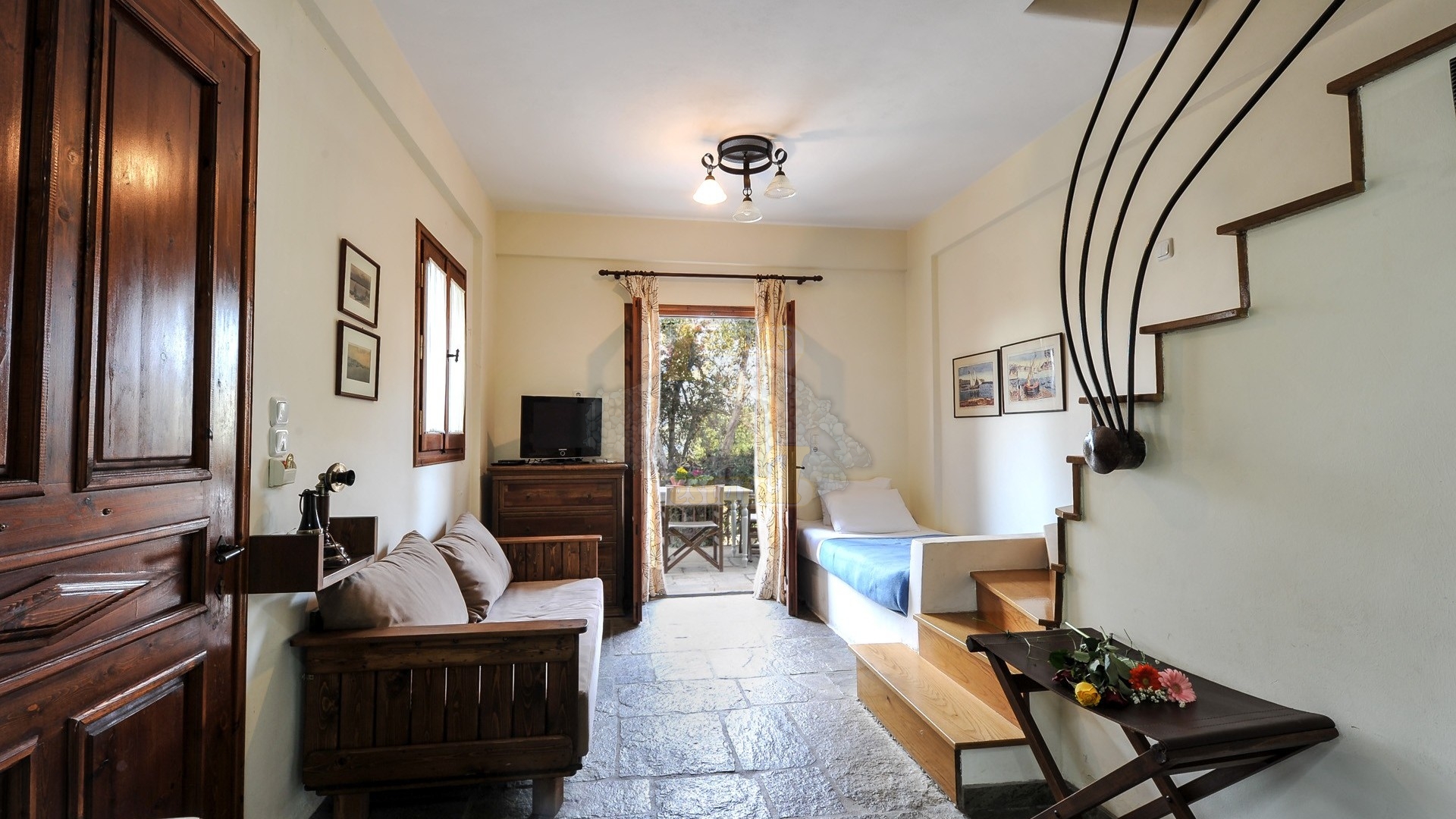 γ) υπερυψωμένο ισόγειο δωμάτιο 12 τ.μ. + βεράντα 25 τ.μ.
